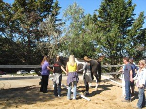 Both EAP and EAL are facilitated by a team that includes a licensed mental health professional (psychologist LMFT, LSW) paired with a certified equine professional. In addition these professionals are trained and certified by EAGALA or EFMA and NARHA/PATH to ensure the highest standards of care and safety. Sessions are experiential, in which the clients learn about themselves and others by participating in creative activities with the horses in the arena, observing the responses of the horses, followed by discussion of the behavior and emotions elicited through the activity. The role of the mental health specialist is to ensure the therapeutic safety and facilitate the emotional growth of the clients. The role of the equine professional is to ensure the physical safety of the horses and clients, as well as observe and describe the horses’ behaviors in the herd and in response to the clients.